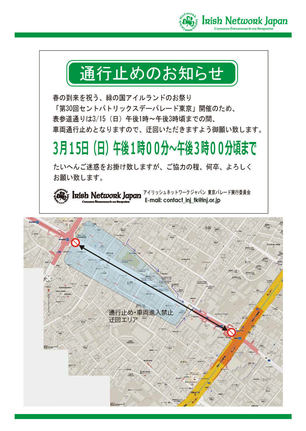 アイリッシュ・ネットワーク・ジャパン(INJ)、セントパトリックスデーパレード東京実行委員会は、